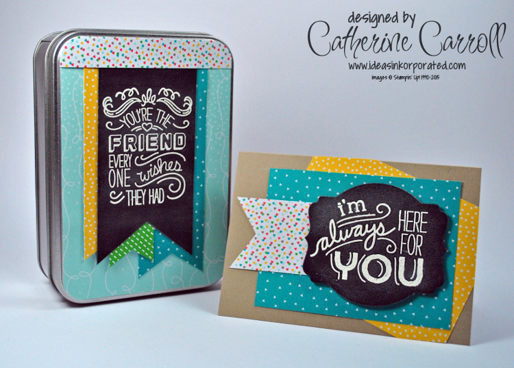 I've chosen to use the Friendly Wishes stamp set, which calls out to be used on chalkboard style cards, don't you think? I used some Crumb Cake notecards I found (yes, my craft room is still a mess, and no, I can never find anything I want when I need it!) and made a gift set.